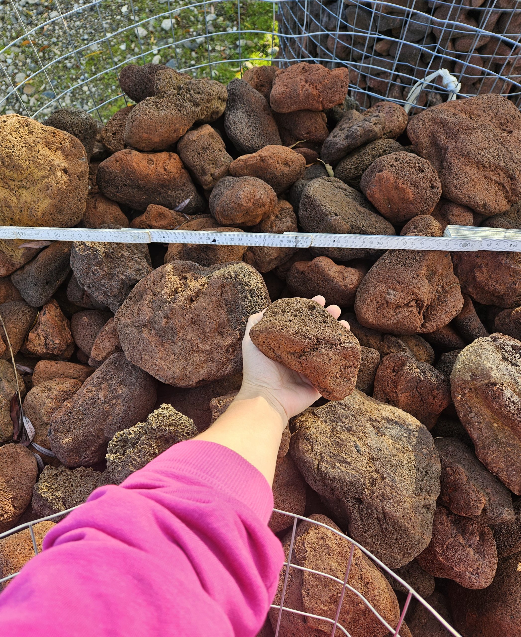 Die Lavabrocken sind ca. 5 – 20cm groß. Die Maße der einzelnen Brocken können je nach Beschaffenheit des Steins variieren.