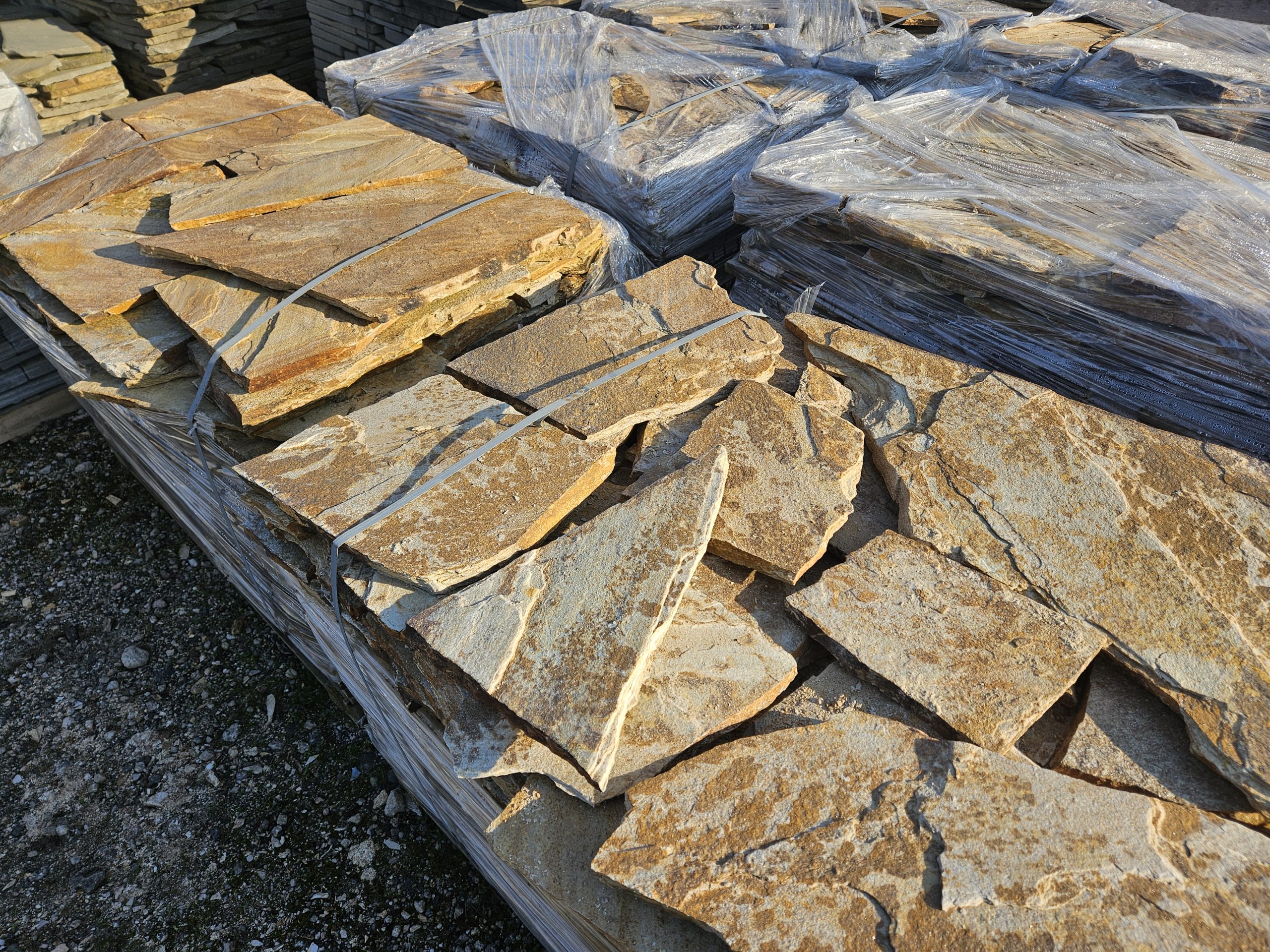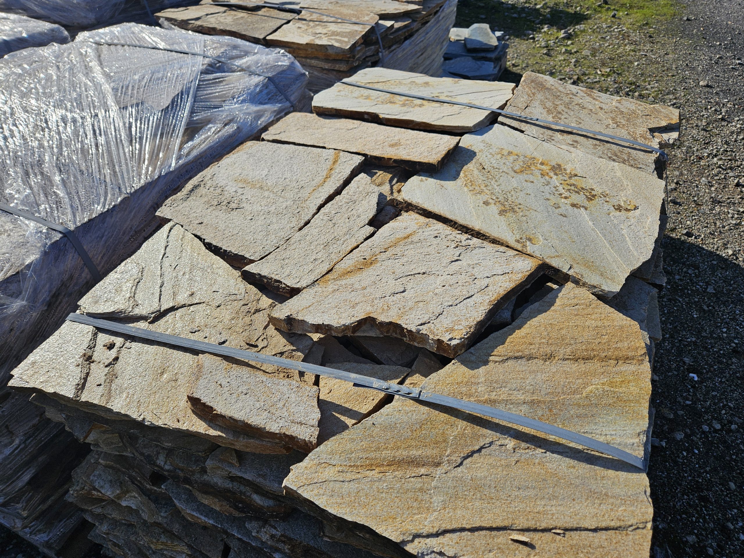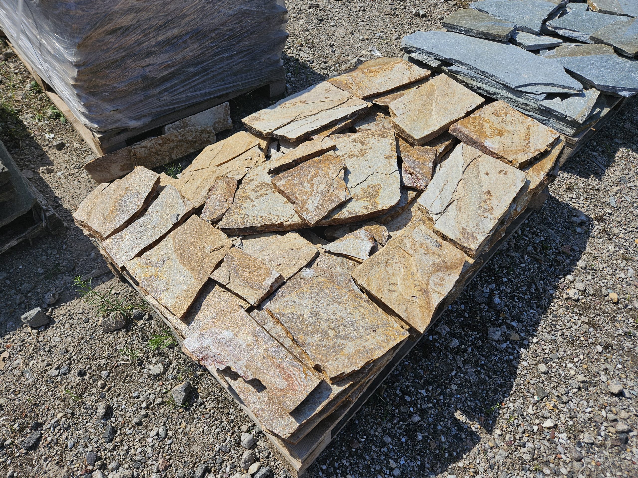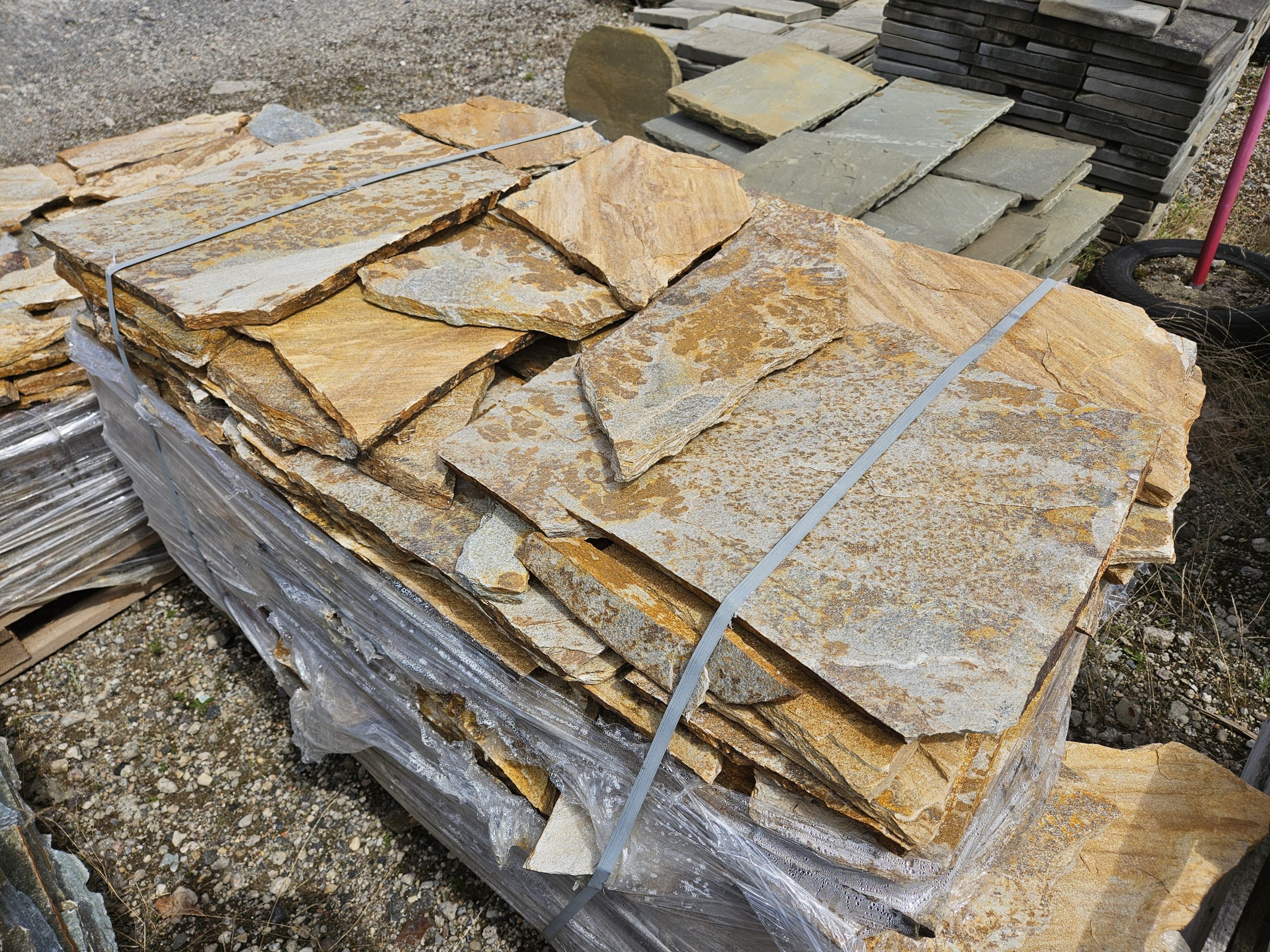 Golden Gneis Polygonalplatten können für Terrasse und Wege verwendet werden. Aber auch für den Innenbereich als Fussbodenbelag sind diese Gneis Polygonalplatten mit spaltrauher Oberfläche geeignet.